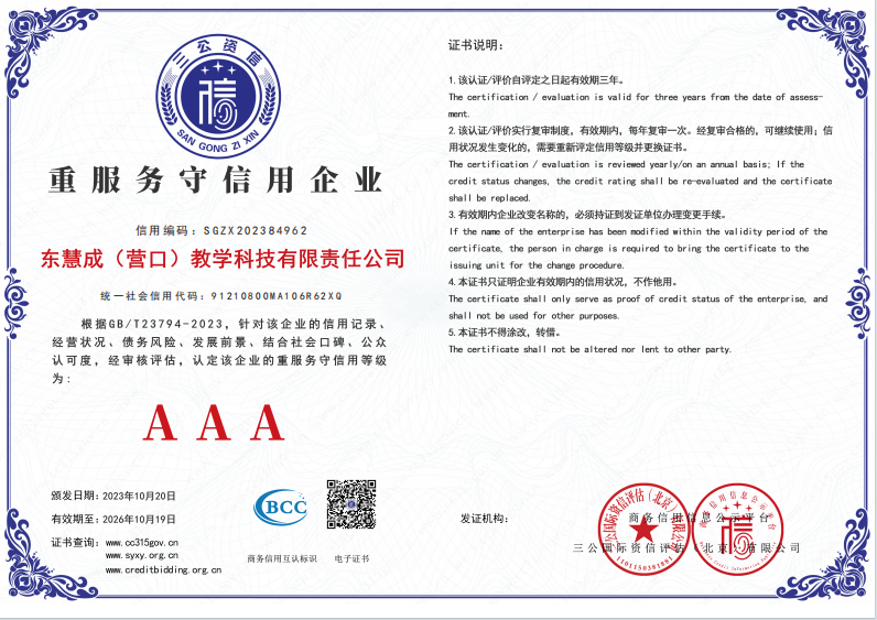 歡迎登陸東慧成(營口)教學科技有限責任公司